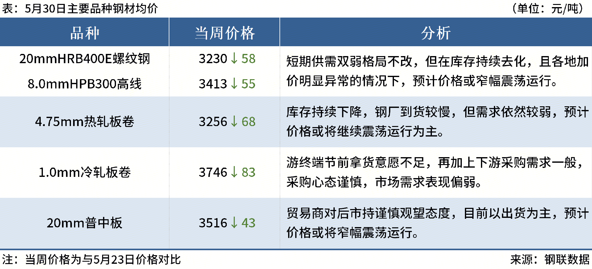 ◎6月1日江蘇永鋼出臺6月上旬出廠價,螺紋鋼、線材盤螺下調(diào)100元/噸,現(xiàn)螺紋鋼3300元/噸,線材盤螺3500元/噸。