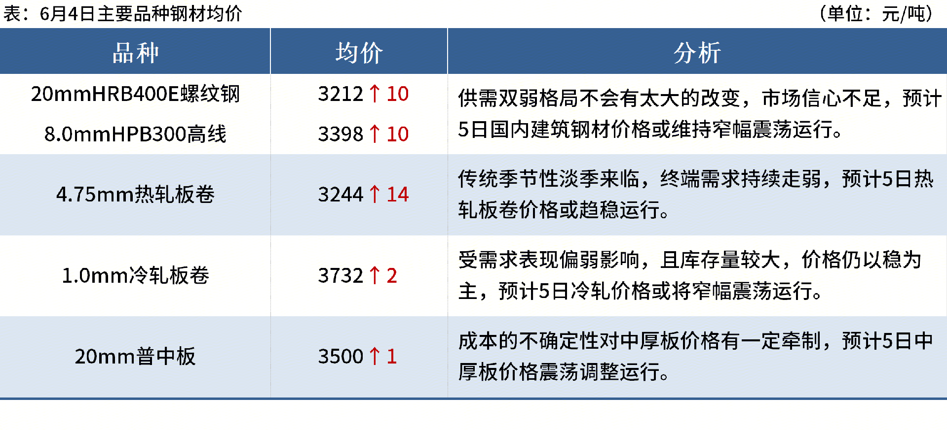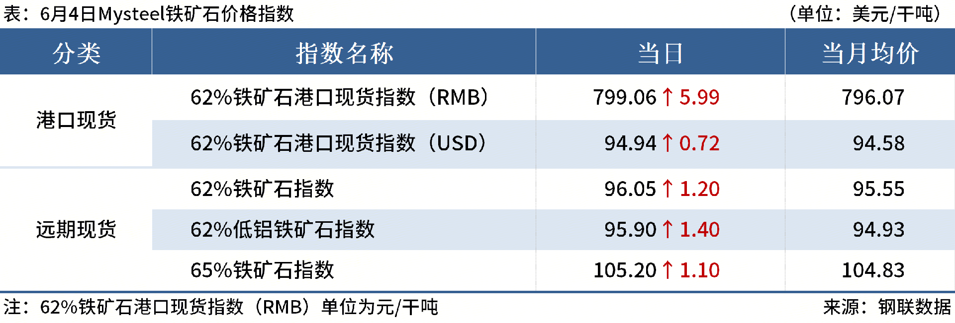 ◎6月4日,全國主港鐵礦石成交106.60萬噸,環(huán)比增28.7%;237家主流貿(mào)易商建筑鋼材成交12.62萬噸,環(huán)比增33.5%。
