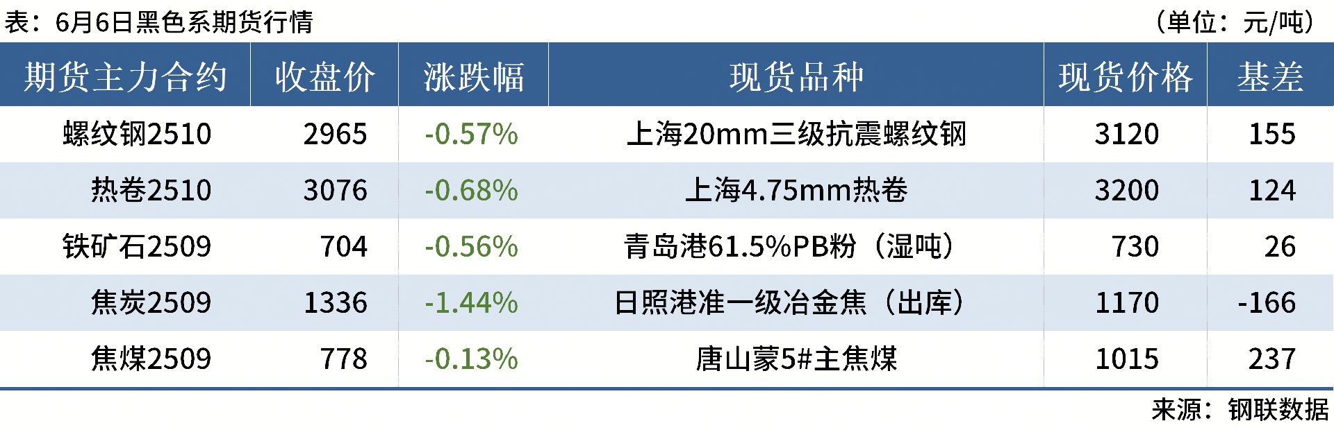◎ 6月6日,全國主港鐵礦石成交74.30萬噸,環(huán)比減22.8%;237家主流貿(mào)易商建筑鋼材成交10.43萬噸,環(huán)比增4.9%。