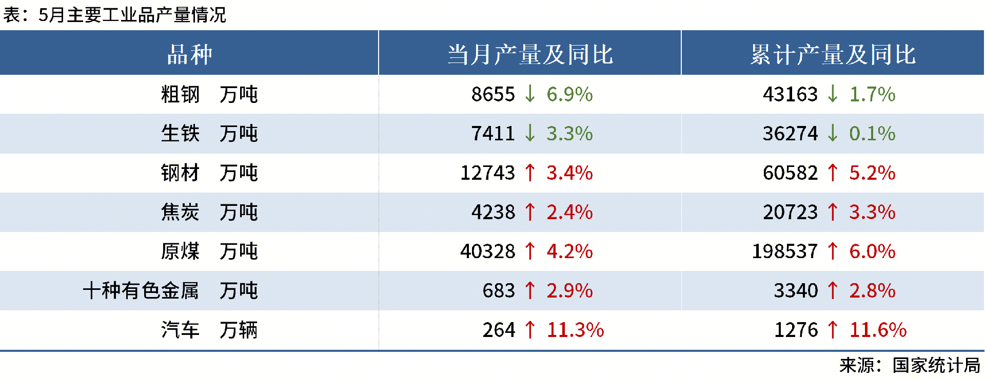 ◎國家統(tǒng)計(jì)局?jǐn)?shù)據(jù)顯示,2025年5月,中國粗鋼產(chǎn)量8655萬噸,同比下降6.9%。其他主要工業(yè)品產(chǎn)量如下: