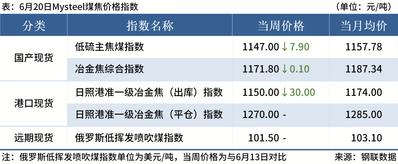 ◎ 6月20日,河北、天津等部分鋼廠對濕熄焦炭下調(diào)50元/噸、干熄焦炭下調(diào)55元/噸,開啟第4輪提降,2025年6月23日零點(diǎn)執(zhí)行。