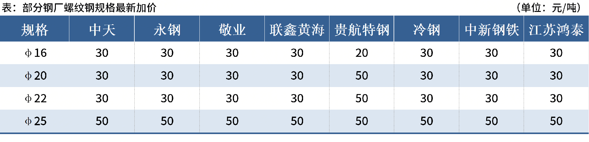 ◎近日部分鋼廠陸續(xù)公布通知,決定對(duì)螺紋鋼(棒)相關(guān)規(guī)格加價(jià)進(jìn)行調(diào)整: