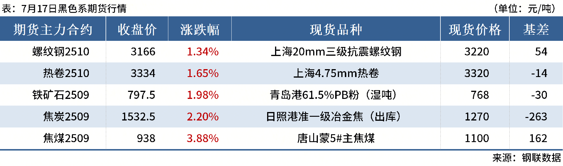◎7月17日,河北、山東主流鋼廠對(duì)焦炭采購(gòu)價(jià)進(jìn)行首輪上調(diào),干熄焦上調(diào)55元/噸,濕熄焦上調(diào)50元/噸。