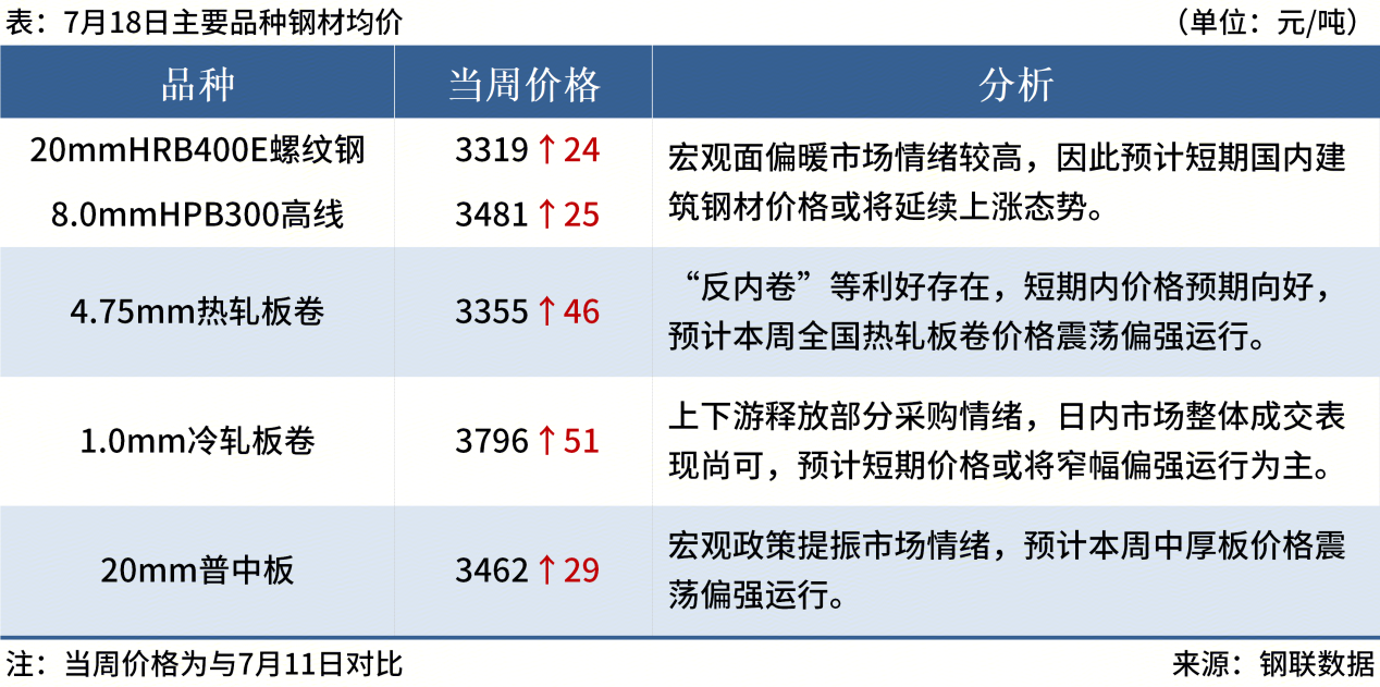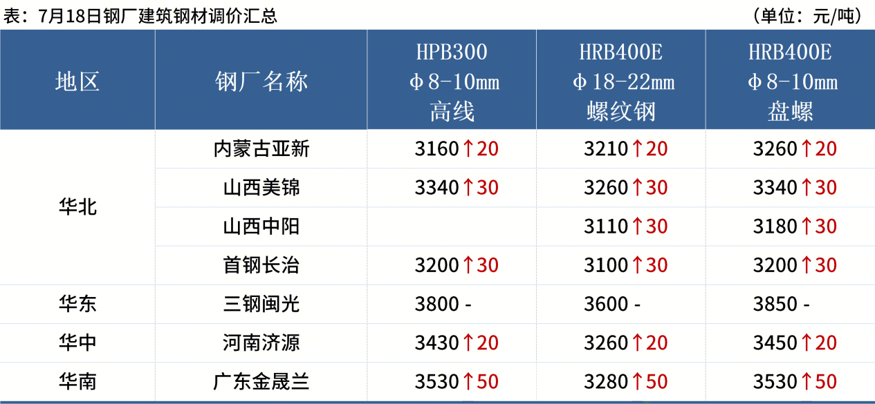 ◎ 7月20日,中天鋼鐵出臺7月下旬價格:螺紋、線材、盤螺上調(diào)100元/噸。現(xiàn)華東螺紋3430元/噸,線材盤螺3680元/噸。
