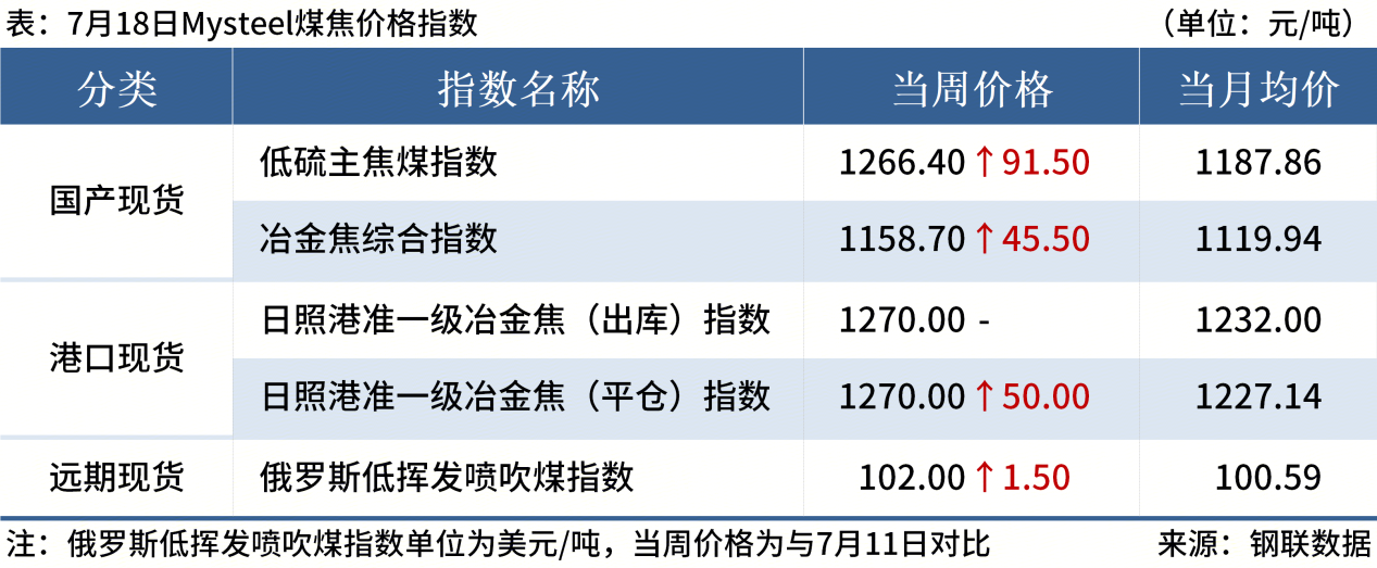 ◎ 7月煉焦煤價格整體呈現(xiàn)穩(wěn)中趨強(qiáng)態(tài)勢。安澤低硫主焦煤出廠價從1170元/噸升至1300元/噸,漲幅11.1%,成為領(lǐng)漲品種。詳情>>