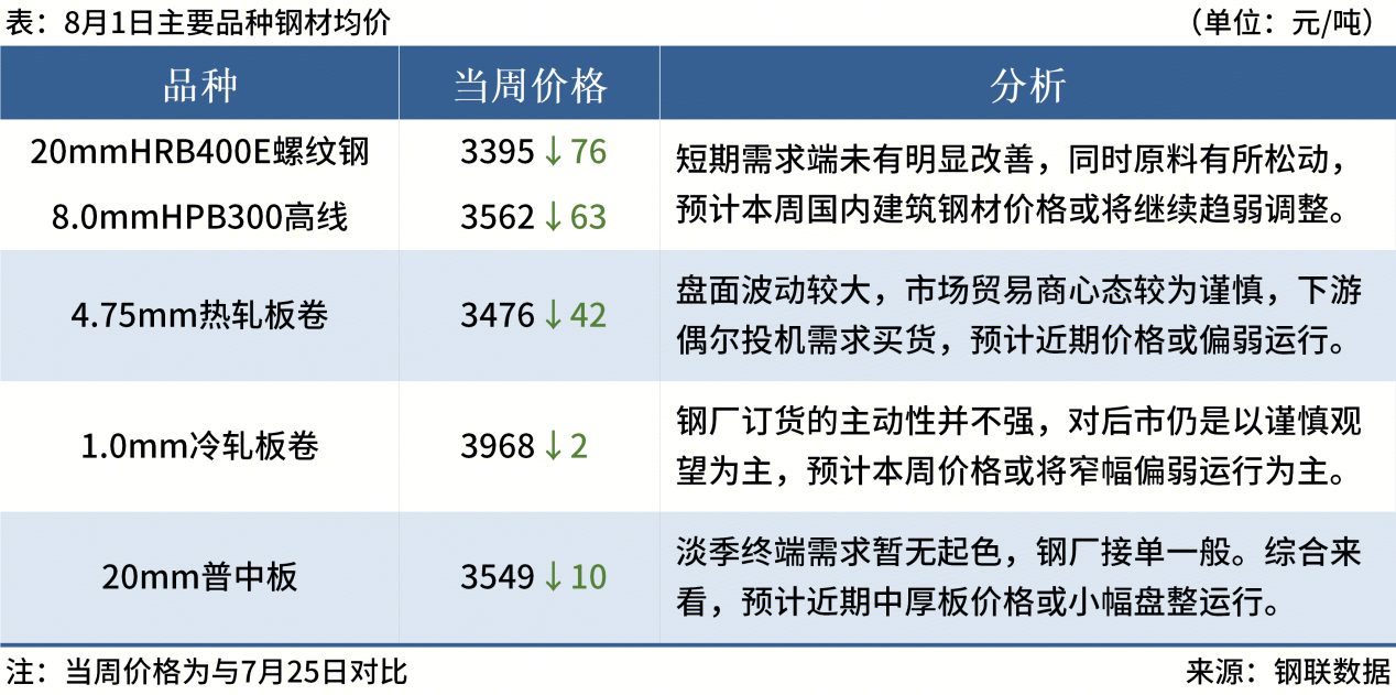 ◎ Mysteel首席分析師汪建華:8月鋼鐵市場(chǎng),產(chǎn)業(yè)人士的信心不足,仍對(duì)鋼材價(jià)格構(gòu)成拖累,而供需或呈現(xiàn)雙弱的態(tài)勢(shì),鋼材價(jià)格仍有階段性進(jìn)一步回調(diào)的壓力。但若鋼廠增強(qiáng)自律性控產(chǎn),疊加行政性指引,鋼價(jià)才有震蕩反彈的空間。詳情>>