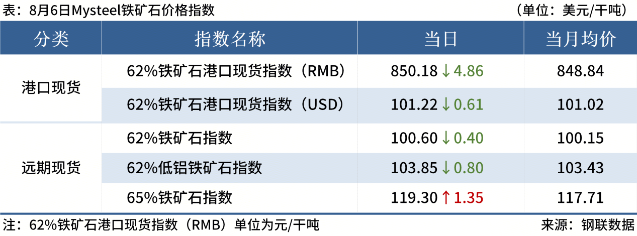 ◎ 8月6日,全國(guó)主港鐵礦石成交106.70萬(wàn)噸,環(huán)比增6%;237家主流貿(mào)易商建筑鋼材成交10.62萬(wàn)噸,環(huán)比減3.5%。