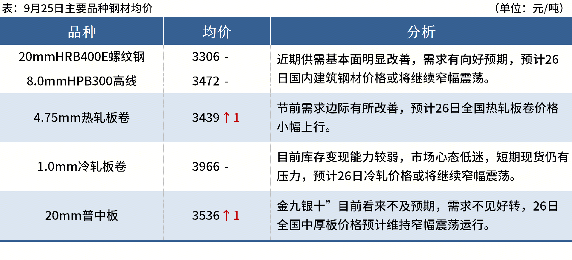◎四川德勝已于9月24日結(jié)束二工區(qū)棒材線檢修,逐步恢復(fù)正常生產(chǎn),日增建筑鋼材產(chǎn)量0.4萬(wàn)噸。