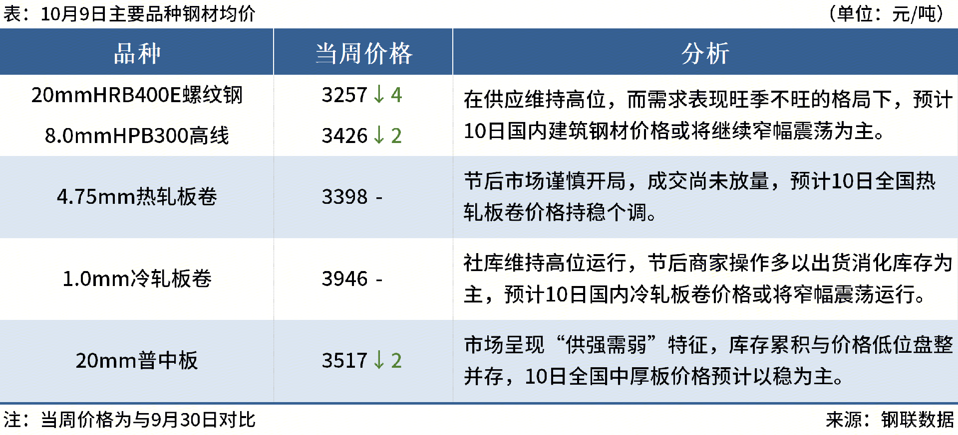 ◎10月9日,76家獨(dú)立電弧爐建筑鋼材鋼廠平均成本為3314元/噸,環(huán)比節(jié)前減少2元/噸,平均利潤(rùn)虧損147元/噸,谷電利潤(rùn)虧損49元/噸。