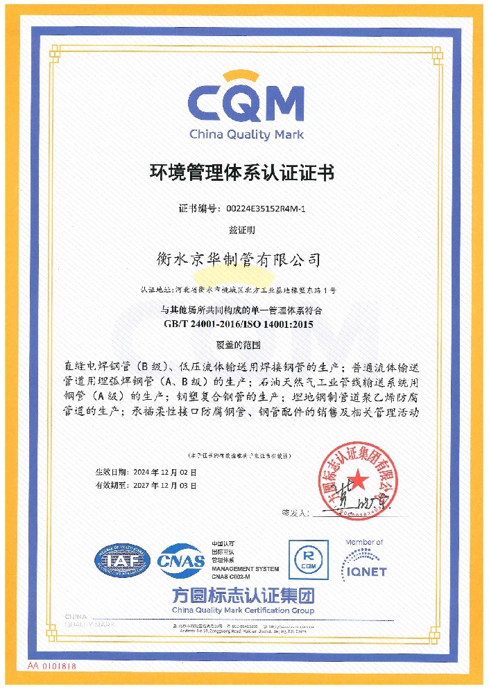環(huán)境管理體系認(rèn)證證書(shū)